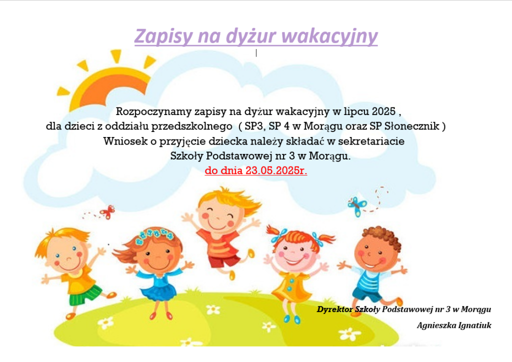DYŻUR WAKACYJNY 2025 – LIPIEC AKTUALNOŚCI 24 kwietnia, 202524 kwietnia, 2025 Agnieszka Ignatiuk wniosek o przyjęcie na dyżur wakacyjnyPobierz
