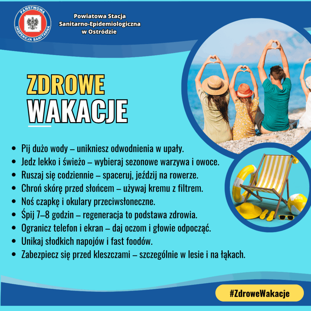 Szkoła wraz z Powiatową Stacją Sanitarno-Epidemiologiczną w Ostródzie przesyła informacje dotyczące akcji „Zdrowe wakacje”. Życzymy zdrowych i bezpiecznych wakacji